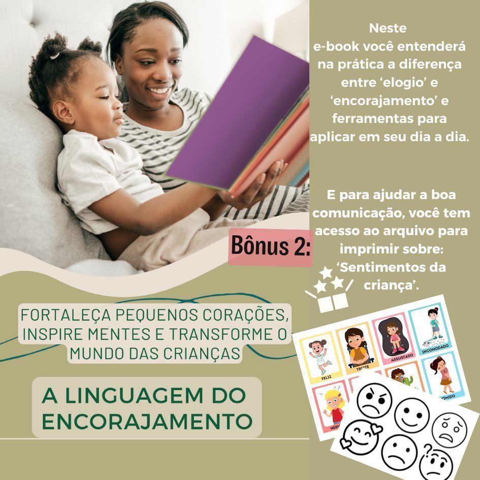 Neste e-book você entenderá na prática a diferença entre 'elogio' e 'encorajamento' e ferramentas para aplicar no seu dia a dia!